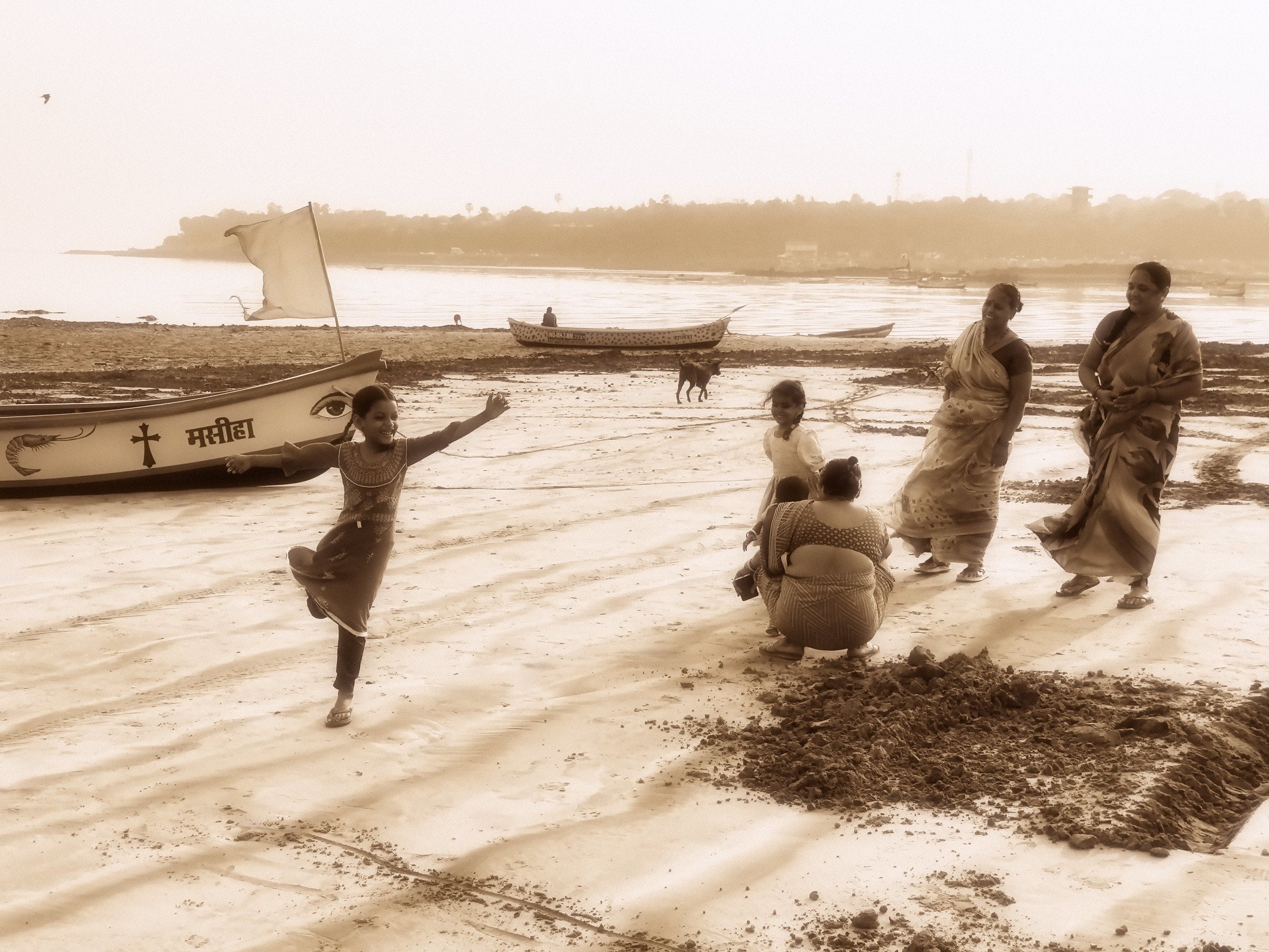 Another example of the fishing technique. I was at Versova Beach in Mumbai just after sundown and waiting for people to walk through the beach lights reflected off the wet sand.