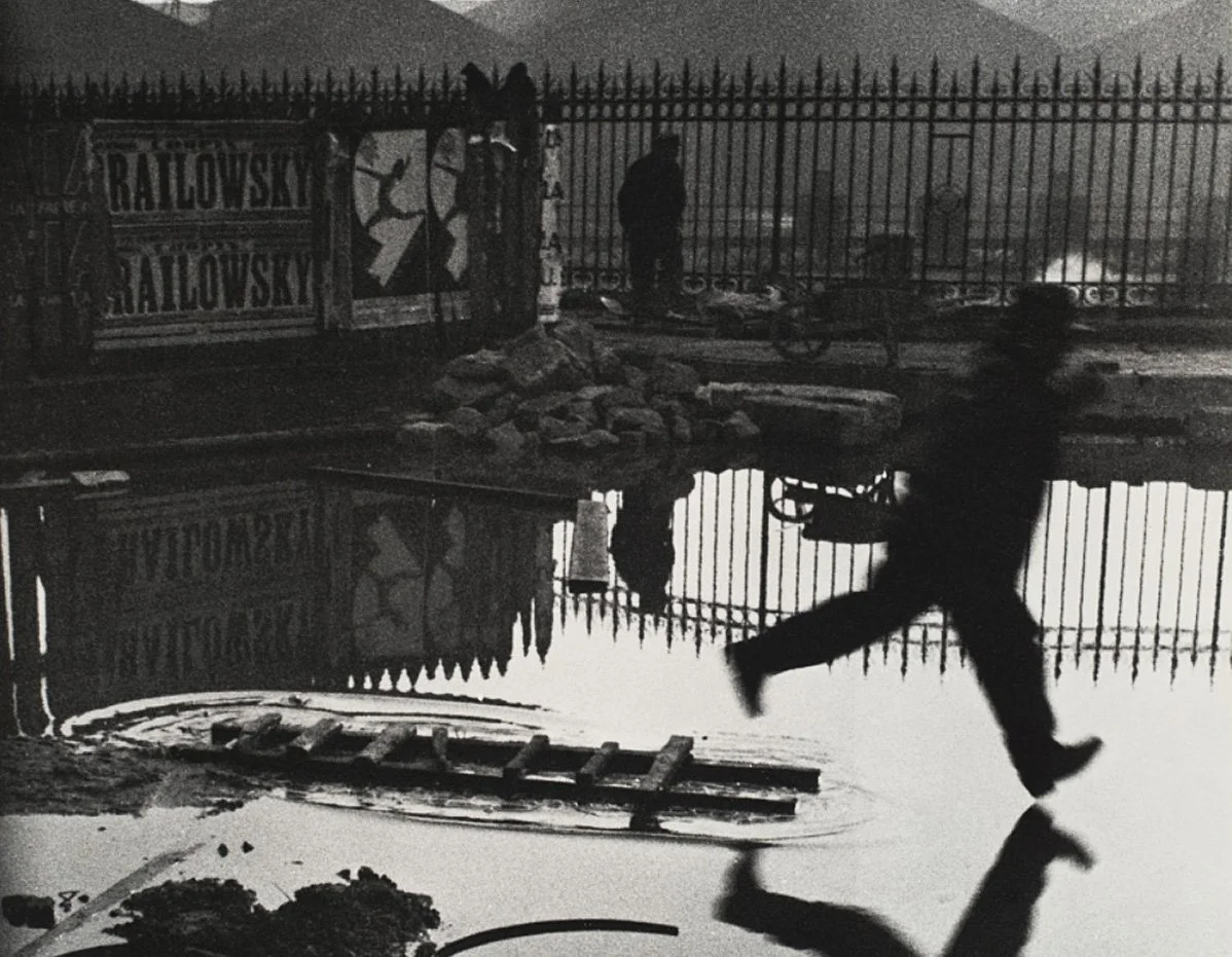 Start with Henri Cartier-Bresson. Everyone talks about the decisive moment but that moment does not come from chaos. It comes from planning. Look at his shot behind the Gare Saint-Lazare. He found his frame. He saw the reflection. Then he waited for the leap. That was fishing.
